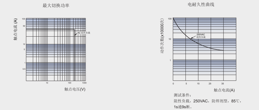 | 35A250VAC,阻性负载,85℃,1s通9s断 | ||||