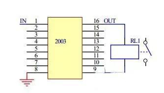 当2003输入端为高电平时,对应的输出口输出低电平,继电器线圈两端通电,继电器触点吸合;当2003输入端为低电平时,对应的输出口呈高阻态,继电器线圈两端断电,继电器触点断开。